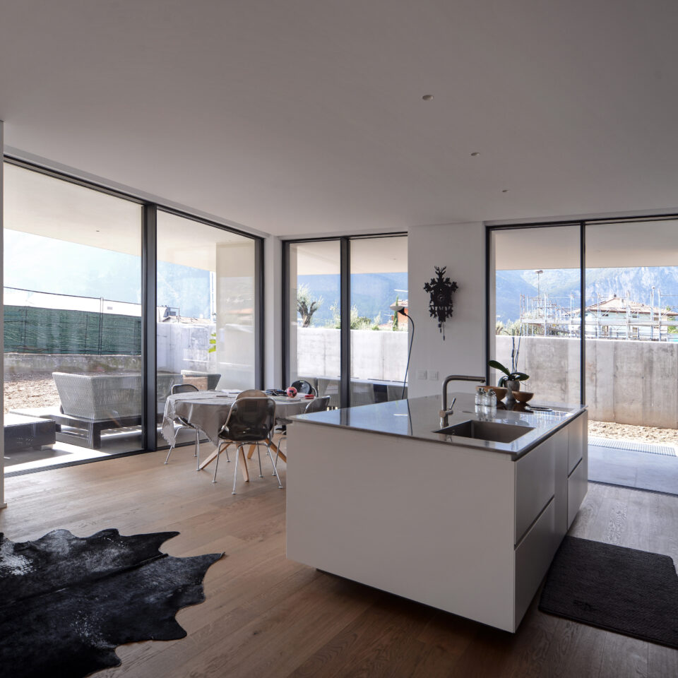 In questa bella residenza privata di Arco, sono state montate finestre e porta-finestre con anta a scomparsa, mix perfetto di performance, design e benessere abitativo.